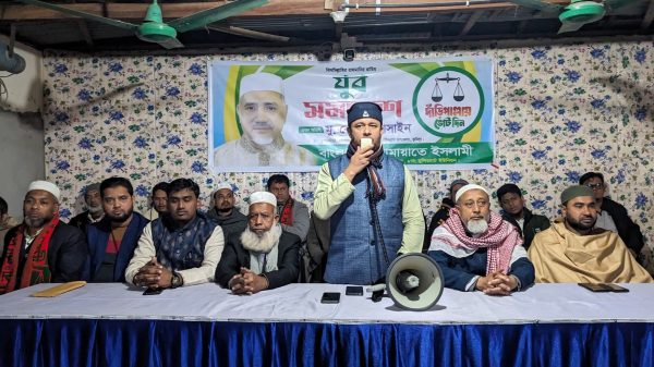 কুমিল্লা-১১ চৌদ্দগ্রাম আসনে দাঁড়িপাল্লা প্রতীককে বিজয়ী করতে জামায়াতের কেন্দ্রীয় নায়েবে আমীর ডাঃ সৈয়দ আবদুল্লাহ মোঃ তাহেরের পক্ষে কাজ করার লক্ষ্যে মতবিনিময় করেছে জামায়াতে ইসলামী ও খেলাফত মজলিসের নেতৃবৃন্দ। বুধবার