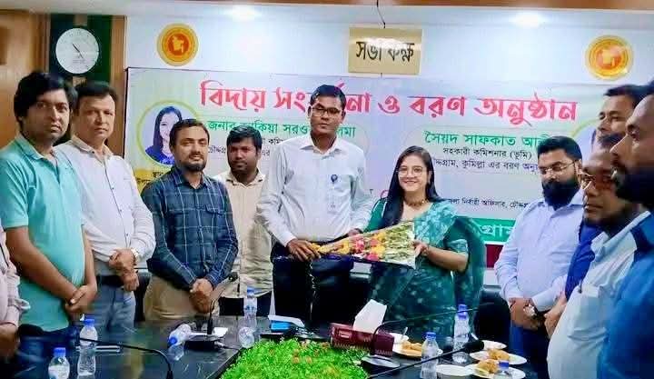 সদ্য বদলি হওয়া চৌদ্দগ্রাম উপজেলা সহকারি কমিশনার(ভূমি) জাকিয়া সরওয়ার লিমা'র বদলি জনিত কারনে ও সদ্য যোগদানকৃত উপজেলা সহকারি কমিশনার(ভূমি) সৈয়দ শাফকাত আলীকে সংবর্ধনা দিয়েছে চৌদ্দগ্রাম উপজেলা প্রশাসনের কর্মকর্তাদের সংগঠন 'অফিসার্স ক্লাব'।