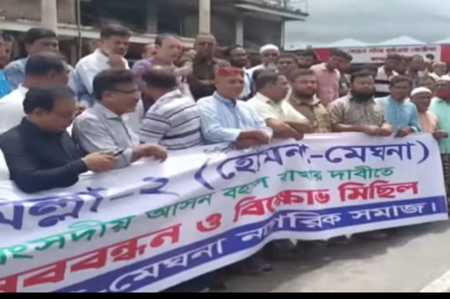 কুমিল্লা-২ (হোমনা-মেঘনা) আসন পুনর্বহালের দাবিতে ঢাকা-কুমিল্লা মহাসড়ক অবরোধ করে বিক্ষোভ করেছে হোমনা-মেঘনা নাগরিক সমাজের ব্যানারে সাধারণ ভোটার ও এলাকাবাসী।