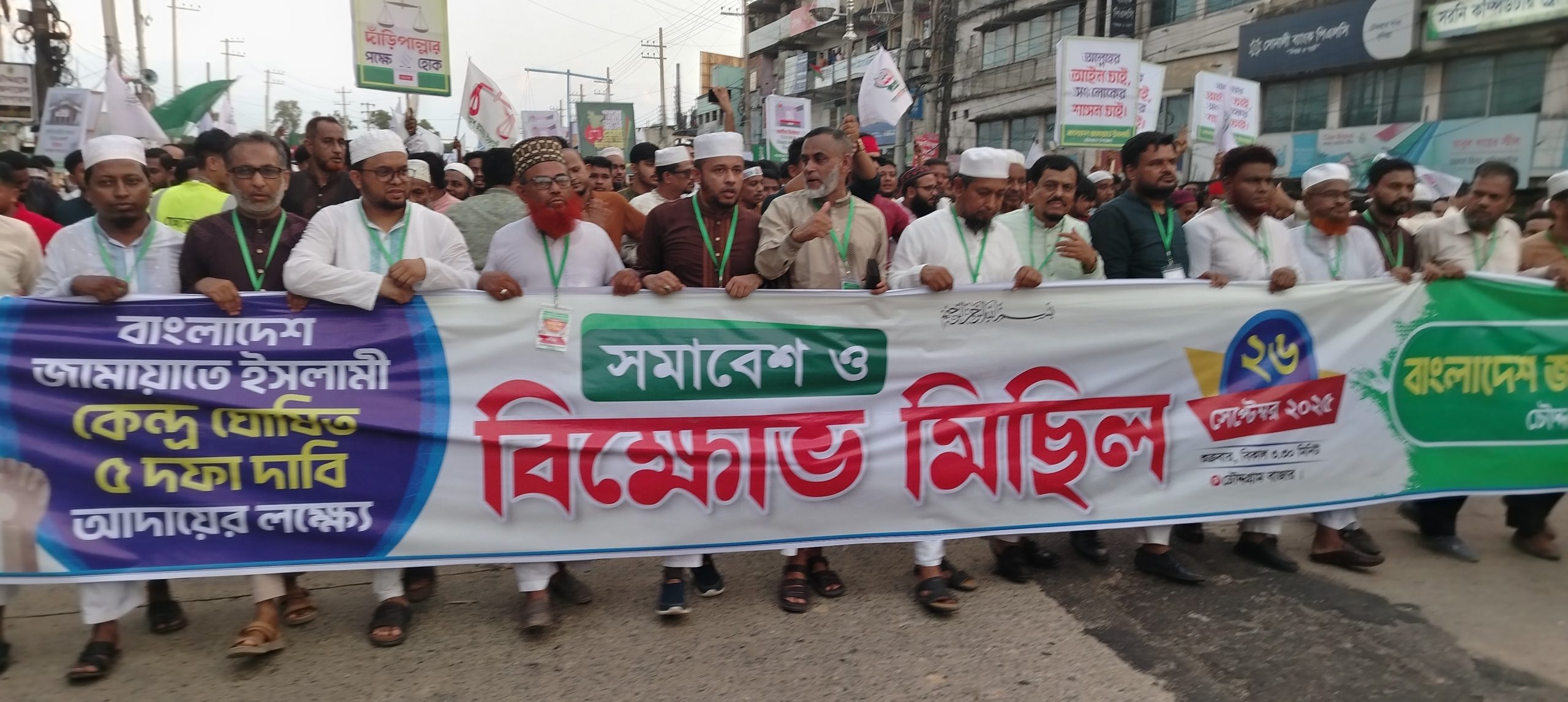 চৌদ্দগ্রাম উপজেলায় পি আর সহ ৫ দফা দাবিতে জামায়াতে ইসলামীর সমাবেশ ও বিক্ষোভ মিছিল