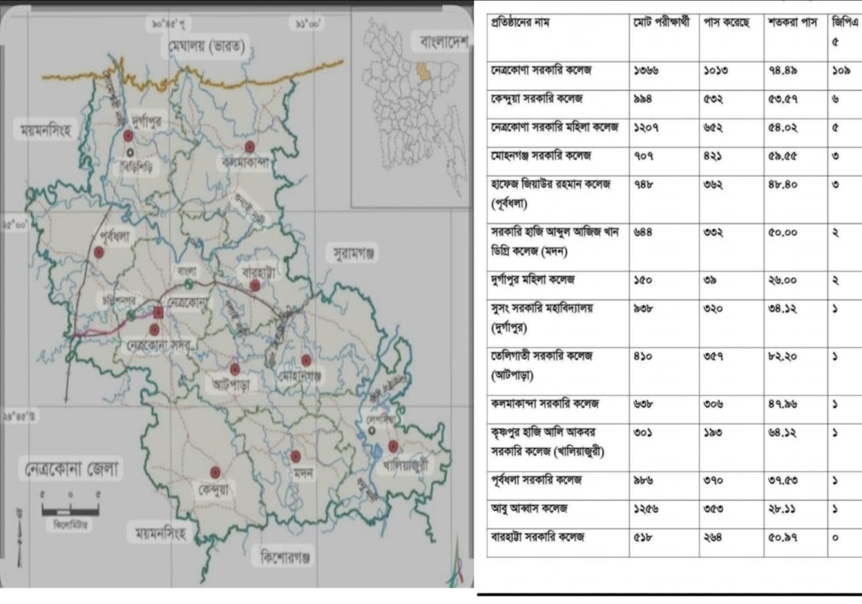 বিশেষভাবে উল্লেখ্য যে, এবার উচ্চমাধ্যমিক সার্টিফিকেট (এইচএসসি) পরীক্ষায় ময়মনসিংহ শিক্ষা বোর্ডে পাসের হার ৫১ দশমিক ৫৪। এর মধ্যে নেত্রকোণা জেলায় পাশের হার ৪৭ দশমিক ৩৯ শতাংশ।