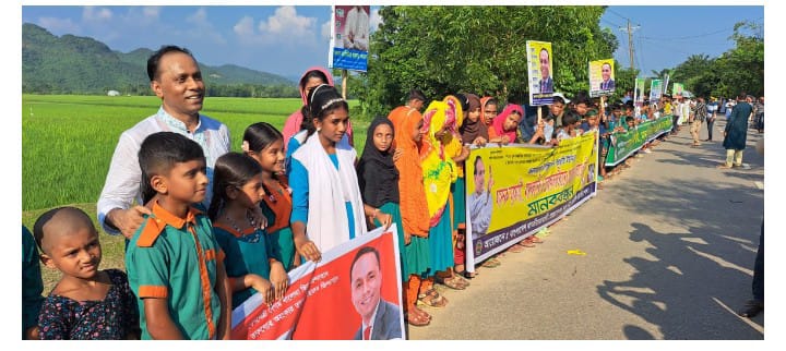 বিকেল ২টায় রংছাতি ইউনিয়নের পাচগাঁও সীমান্ত সড়কে সেচ্ছাসেবক দলের আয়োজনে এ মানববন্ধন অনুষ্ঠিত হয়।উক্ত