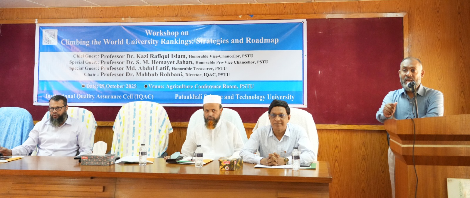 পটুয়াখালী বিজ্ঞান ও প্রযুক্তি বিশ্ববিদ্যালয়ে (পবিপ্রবি) “Climbing the World University Rankings: Strategies and Roadmap” শীর্ষক দিনব্যাপী এক কর্মশালা অনুষ্ঠিত হয়েছে। বুধবার (২৯ অক্টোবর) সকাল ৯টায় বিশ্ববিদ্যালয়ের কৃষি অনুষদের সেমিনার কক্ষে এই কর্মশালার আয়োজন করে বিশ্ববিদ্যালয়ের Institutional Quality Assurance Cell (IQAC)।